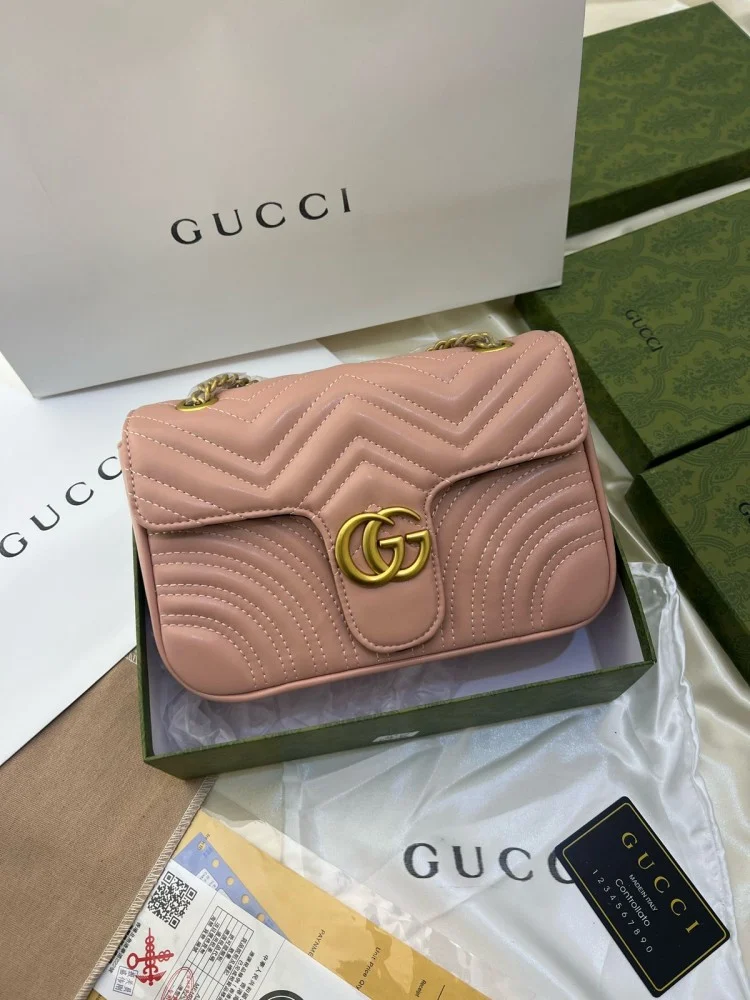 Gucci Small GG Marmont Shoulder Bag in Pink