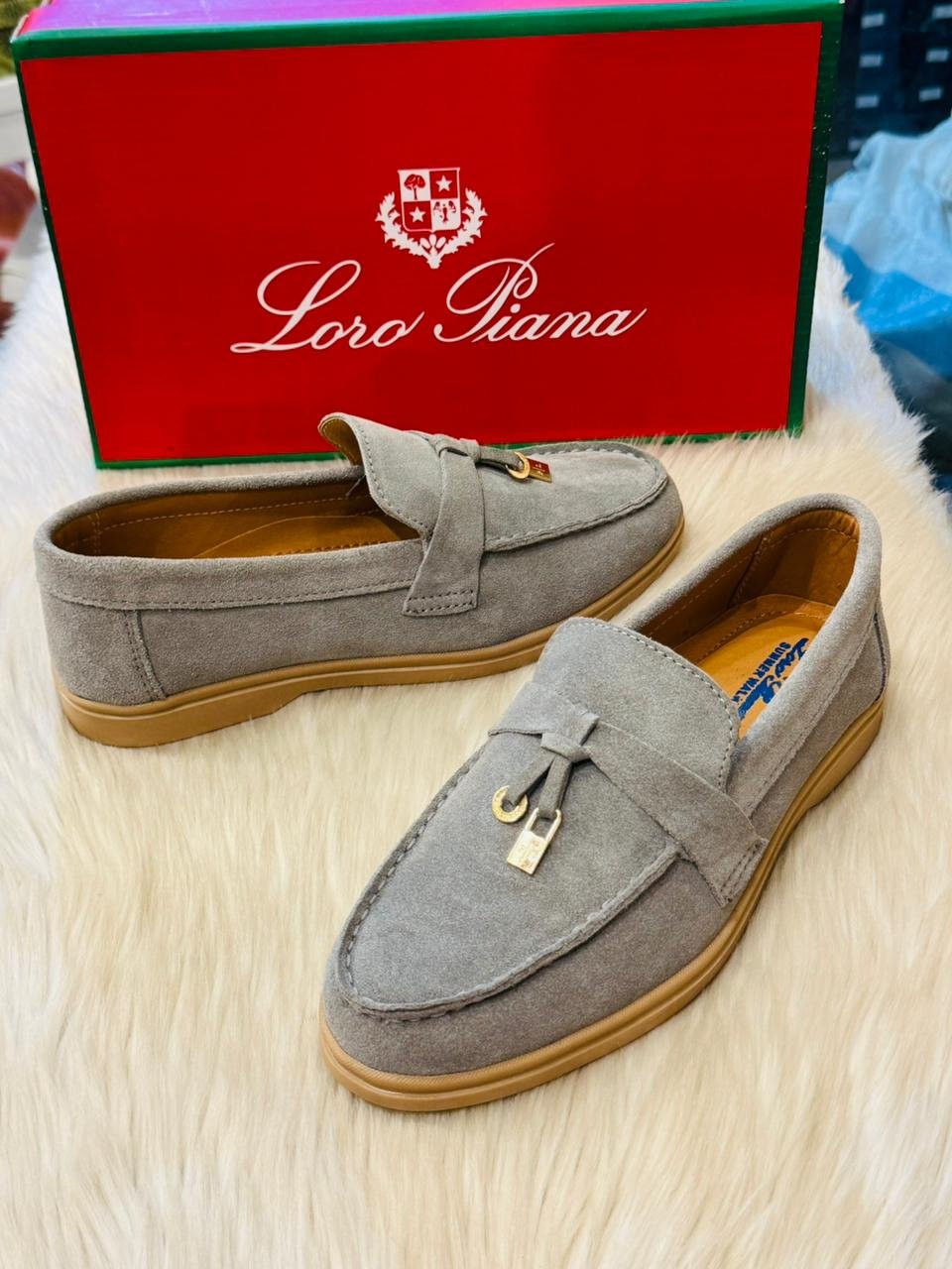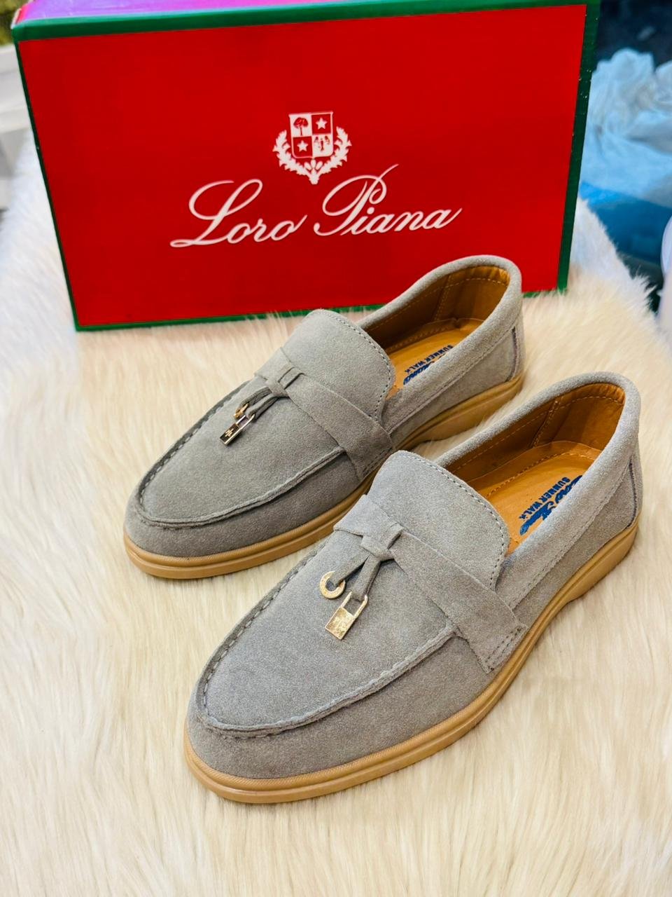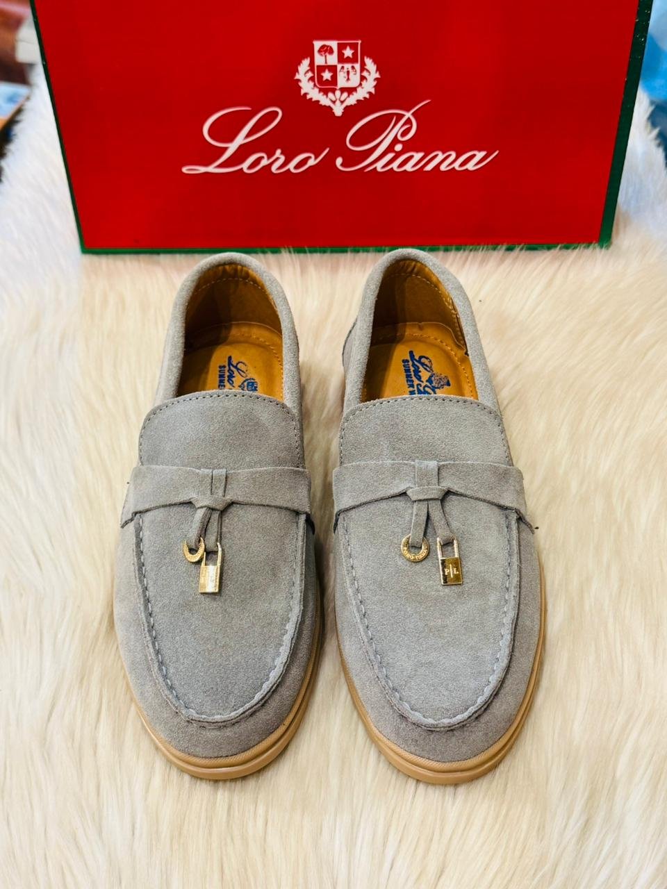 Loro Piana Suede Loafers in Powder Blue