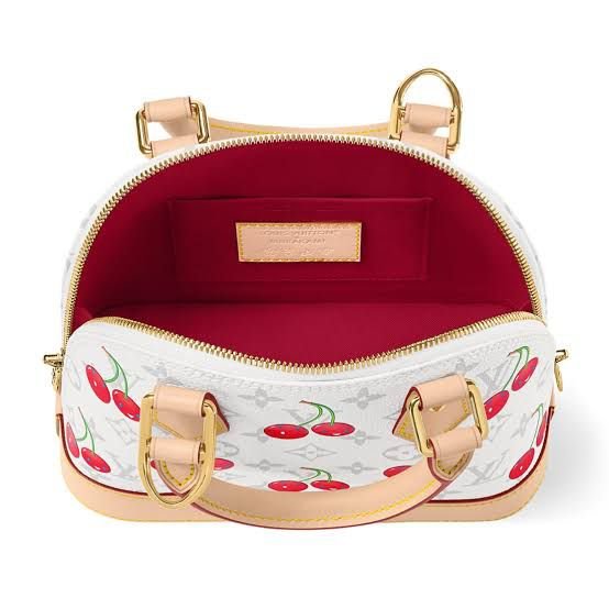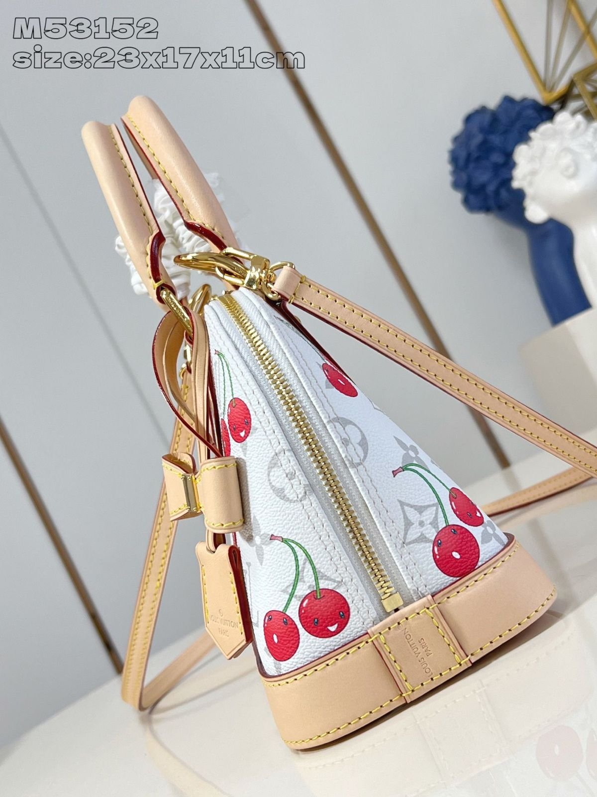 Louis Vuitton Nano Alma Bag with Cherry Motif in White