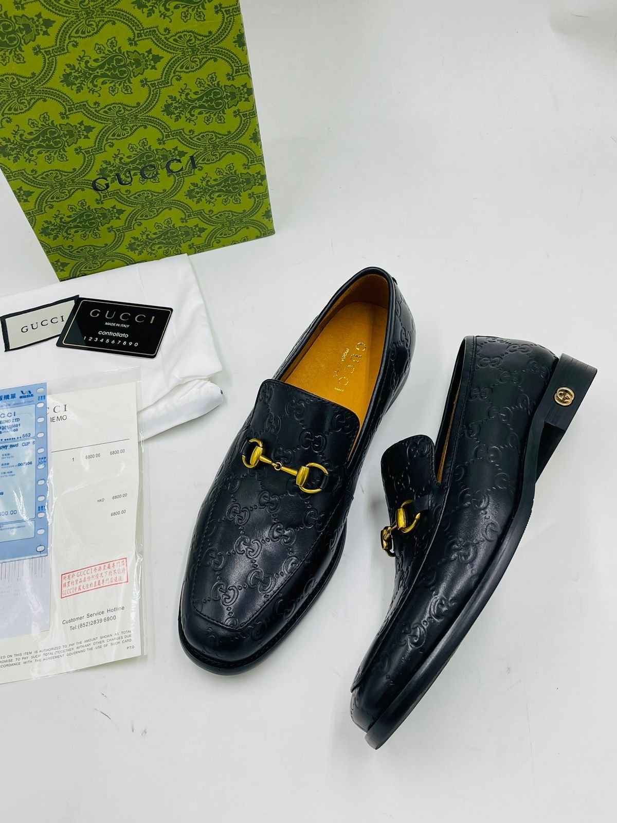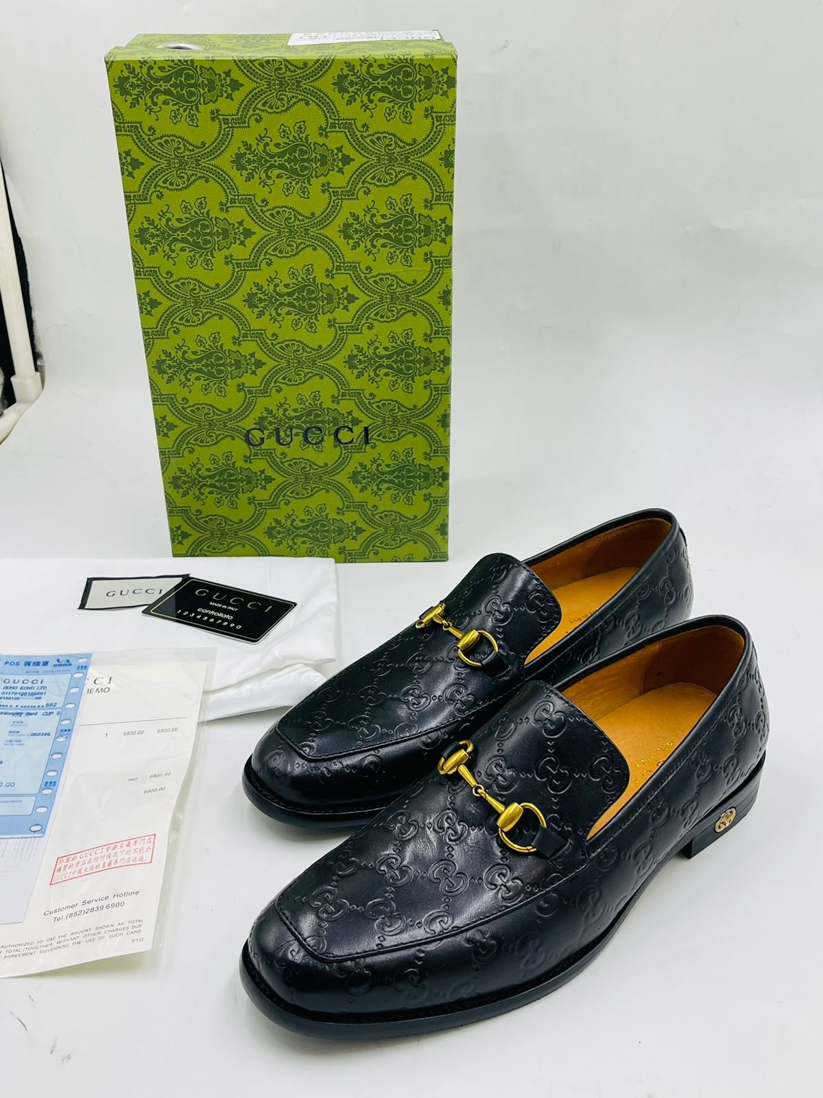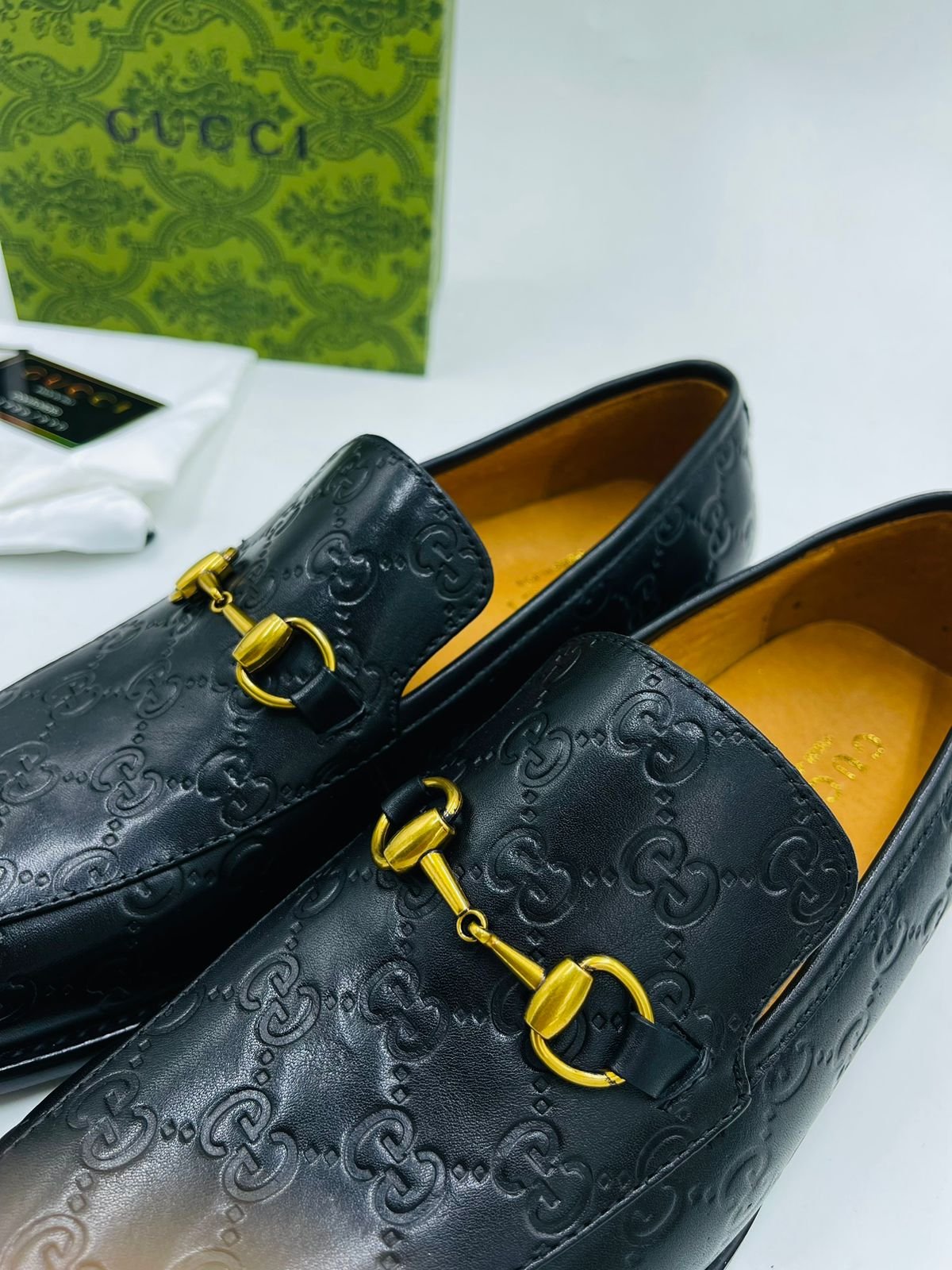 Indulge in the epitome of luxury with our GUCCI SHOES Classic Monogram Leather Loafers.