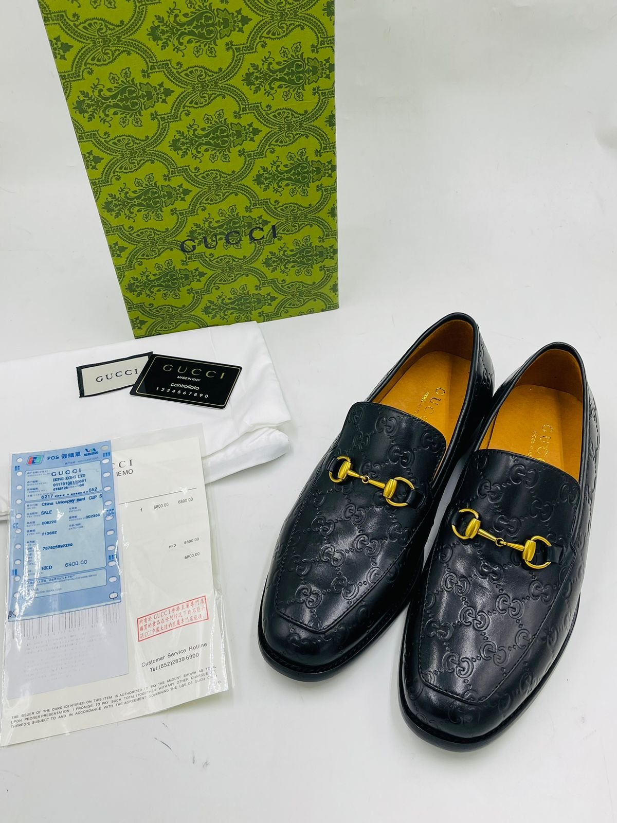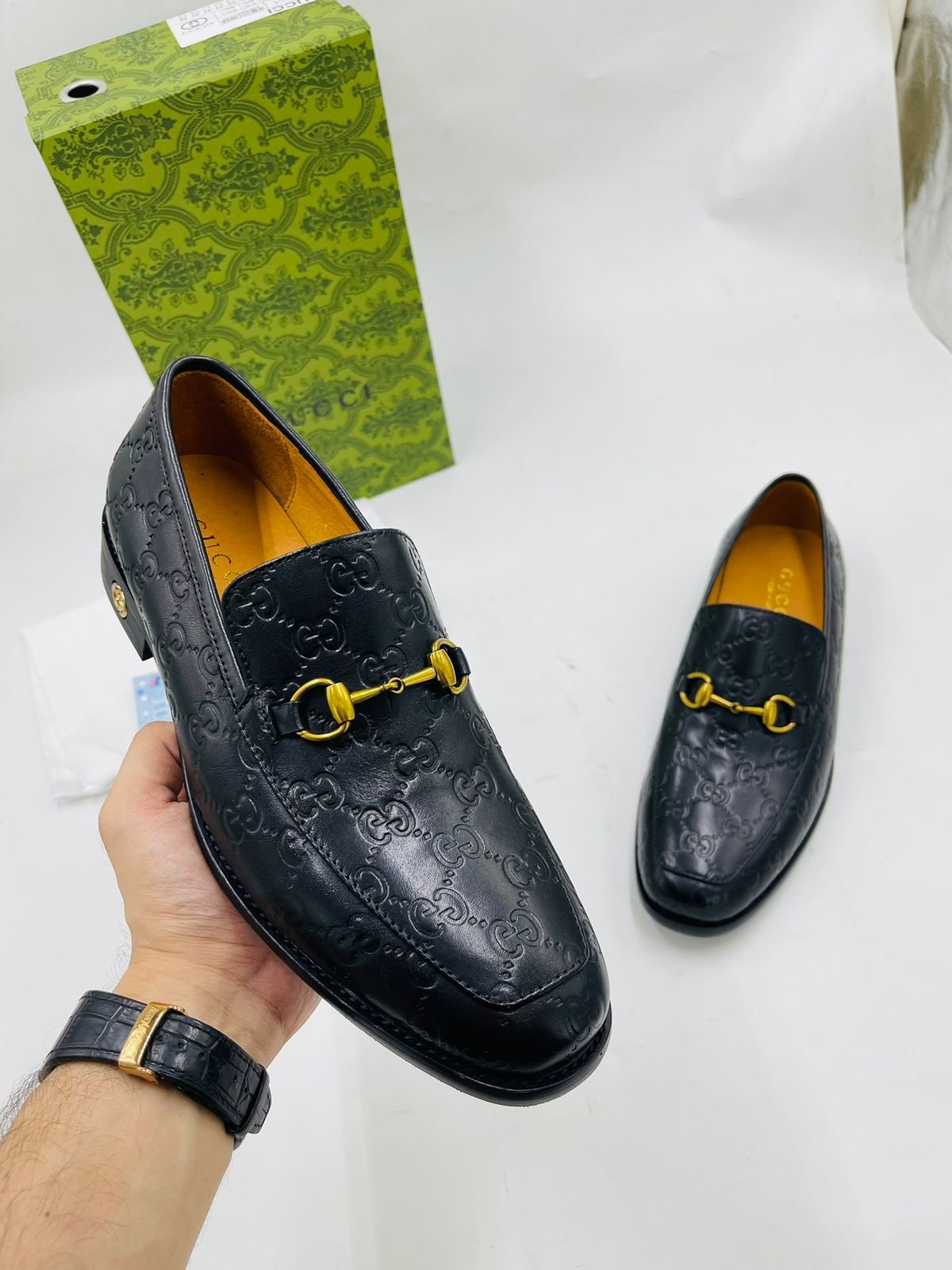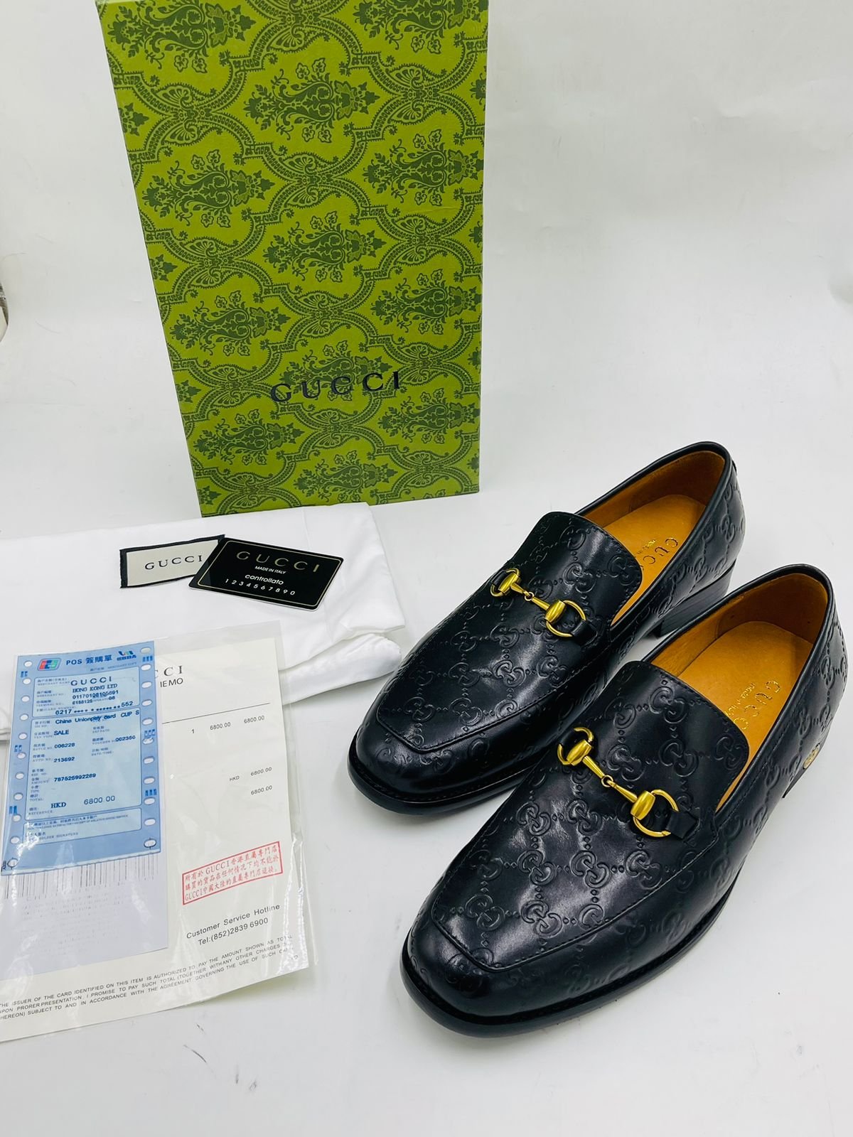Indulge in the epitome of luxury with our GUCCI SHOES Classic Monogram Leather Loafers.