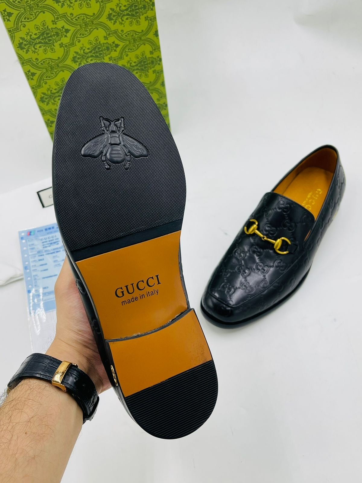 Immerse yourself in the unparalleled luxury of GUCCI SHOES craftsmanship. These loafers are