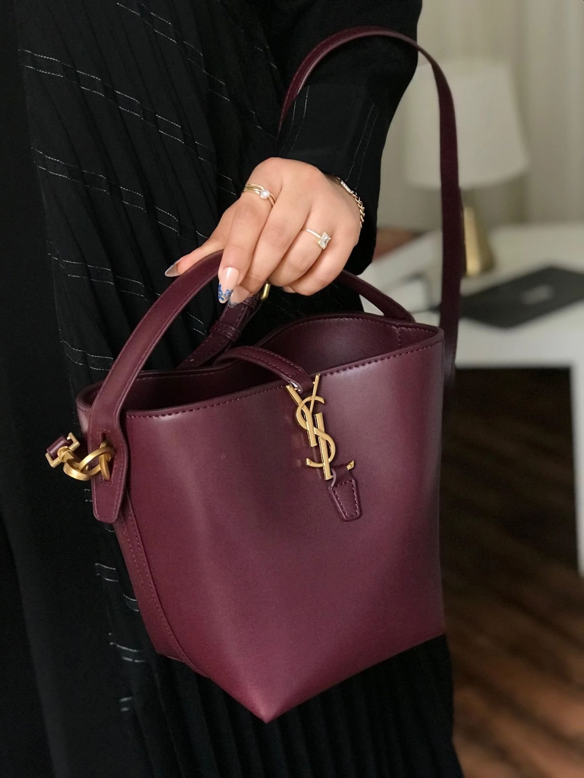 Saint Laurent Mini Le 37 Bucket Bag in Burgundy