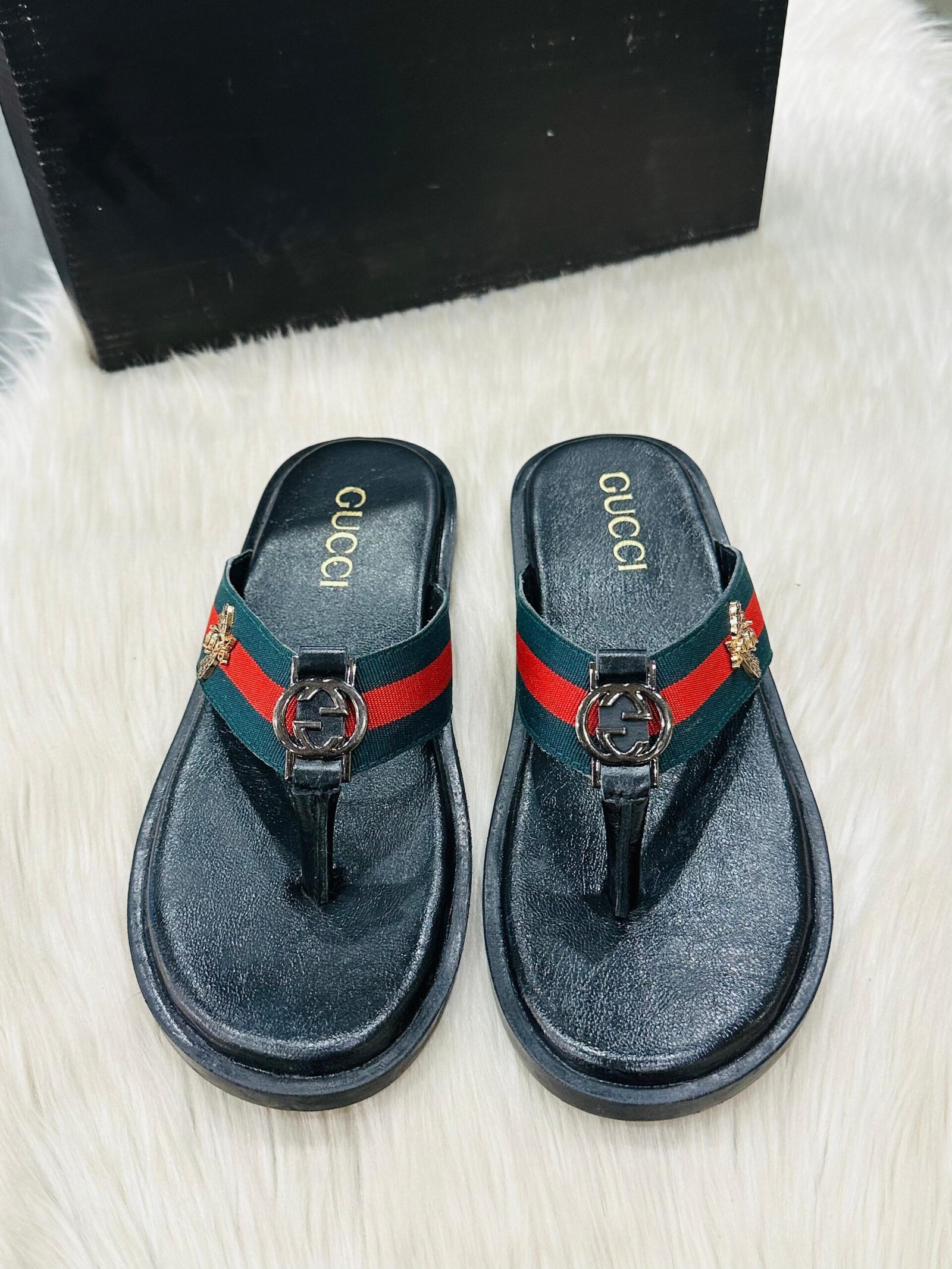 Designed with premium leather, these slides offer a sleek finish, soft